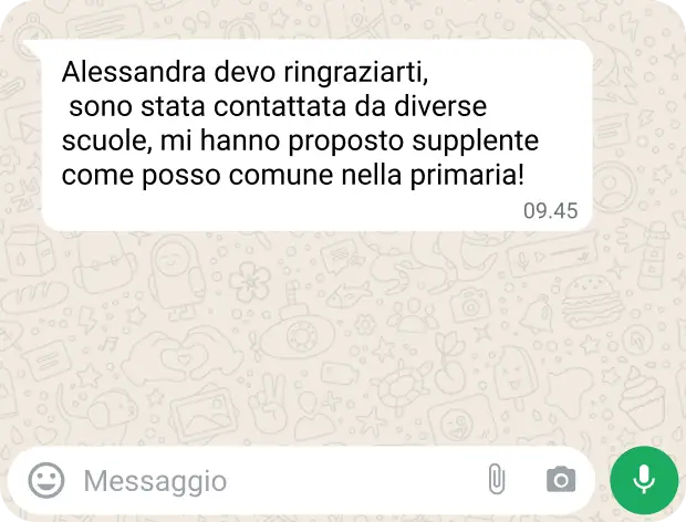 Il lavoro nel settore scolastico è una delle opportunità più solide e gratificanti in Italia. Con il nostro pacchetto “Consulenza Mondo Scuola”, trasformi la confusione in chiarezza e ti metti sulla strada giusta per costruire una carriera stabile e soddisfacente nel mondo dell’istruzione. Prenota ora la tua consulenza personalizzata e scopri come entrare davvero nel mondo della scuola.