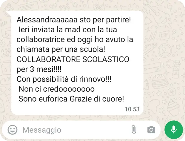 Il pacchetto Consulenza Mondo Scuola non è un semplice orientamento: è un aiuto concreto e personalizzato per capire dove e come iniziare a trovare lavoro nel mondo scolastico. Ti forniamo risposte aggiornate, esempi pratici e materiali utili per candidarti in modo corretto e competitivo. Che il tuo sogno sia entrare nelle segreterie delle scuole, lavorare come educatore o iniziare la carriera da personale ATA, con noi saprai esattamente come si entra a lavorare nelle scuole.