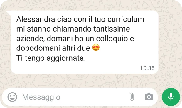 Il nostro servizio di revisione completa ti permette di avere un CV ottimizzato per la ricerca che vuoi condurre o per l’offerta specifica a cui punti. Che tu sia un giovane in cerca della prima esperienza o un professionista esperto, studiamo la tua storia per farti emergere al meglio.